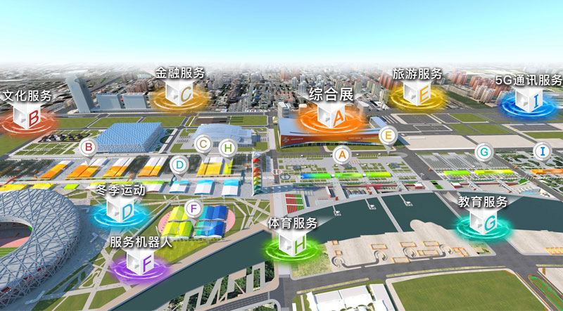 專題展分為:文化服務(wù)展、金融服務(wù)展、冬季運(yùn)動(dòng)展、旅游服務(wù)展、教育服務(wù)展、服務(wù)機(jī)器人展、5G通信服務(wù)展、體育服務(wù)展等。